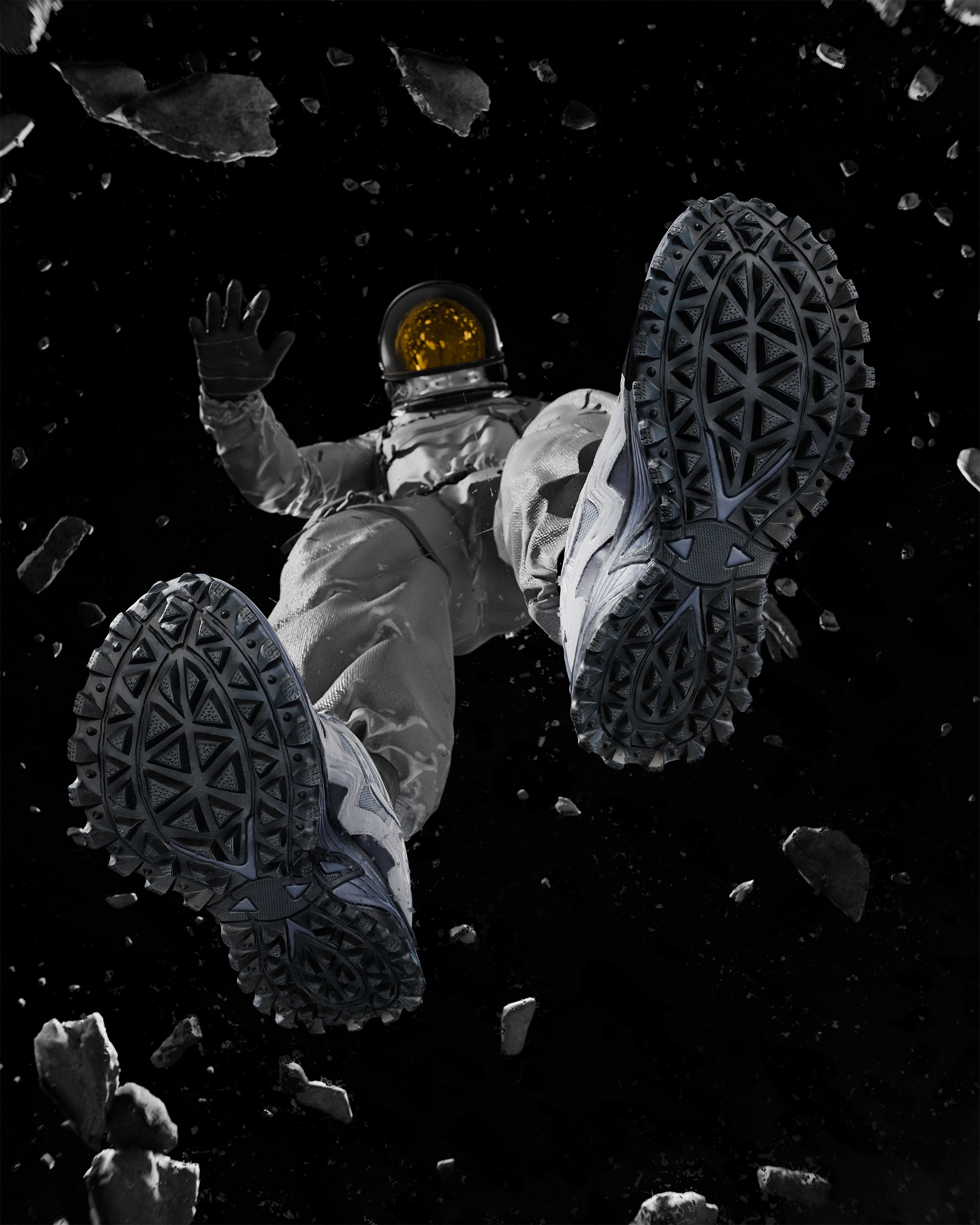Numechi Studio needed to launch Saucony’s Grey Pack with a campaign that referenced the moon landing aesthetic without falling into predictable studio visuals.